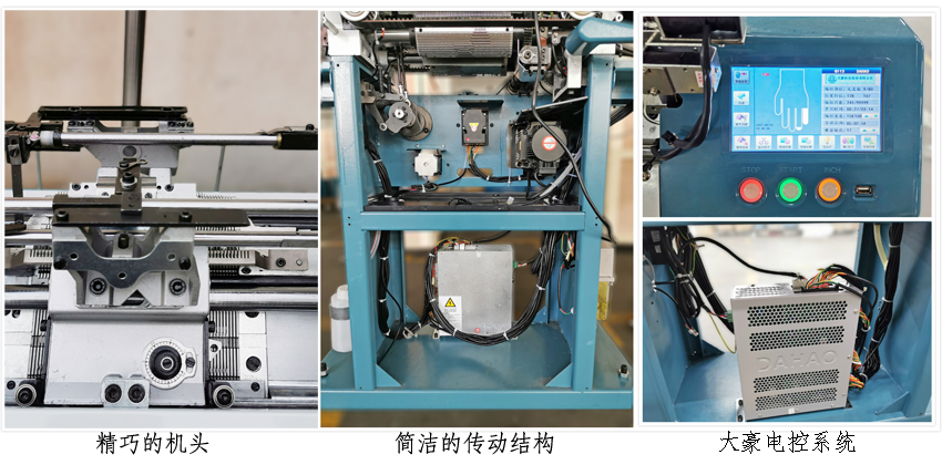 機器還可選配自動整理手套裝置,無線非接觸式業(yè)的斷針感應(yīng)裝置、U2、U3、雙色或三色橫紋、規(guī)則小提花、半指、手指雙色、正手手套無線頭、小拇指低叉,任意半指一鍵切換等功能。(各種裝置詳情)